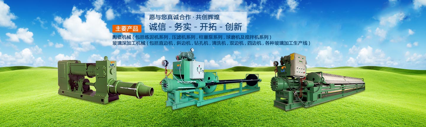 主要產(chǎn)品有:陶瓷機械(包括練泥機系列、壓濾機系列、柱塞泵系列、球磨機及攪拌機系列)